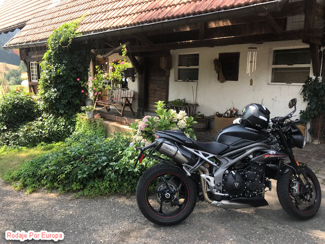 Entrando en Selva Negra el paisaje se vuelve muy verde, es hermoso. Vamos directos al hotel Rommelehof para dejar las cosas y prepararnos para recorrer el máximo. La gente del hotel muy cordial, observaron que llegábamos en moto con mucho calor y nos reciben con agua fresca. El hombre nos diseña una ruta para conocer Selva Negra.